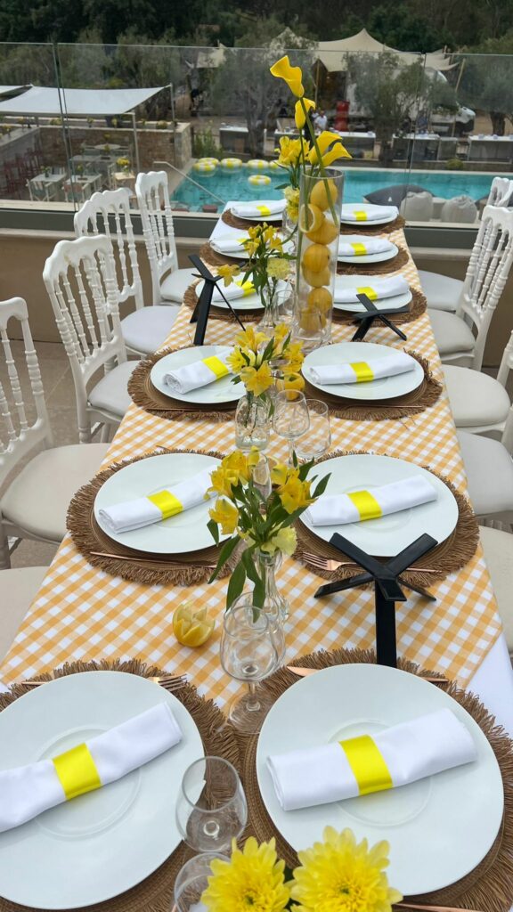 Chaque espace est pensé pour créer une ambiance magique et cohérente : compositions florales, éclairage, mobilier, dressage des tables, mise en scène des traditions.